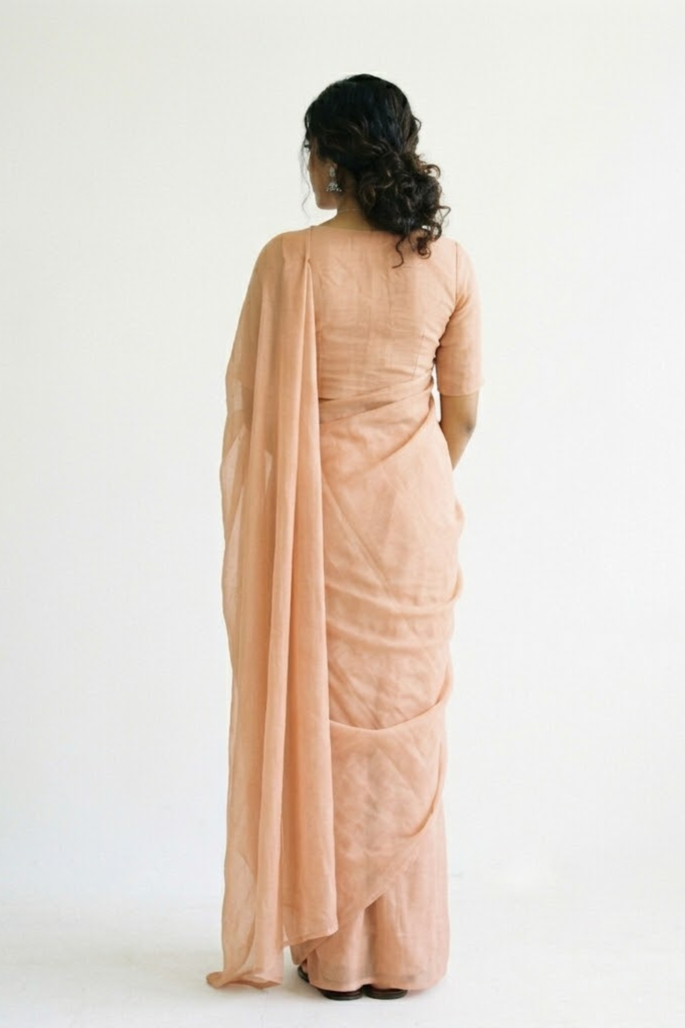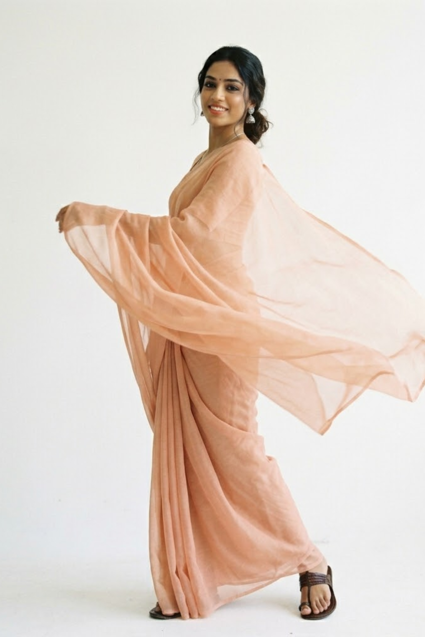 Step into effortless elegance with this women’s peach georgette saree, crafted to deliver a soft, minimal, and graceful look. The soothing peach shade adds a delicate charm, making it perfect for everyday wear as well as light festive occasions.