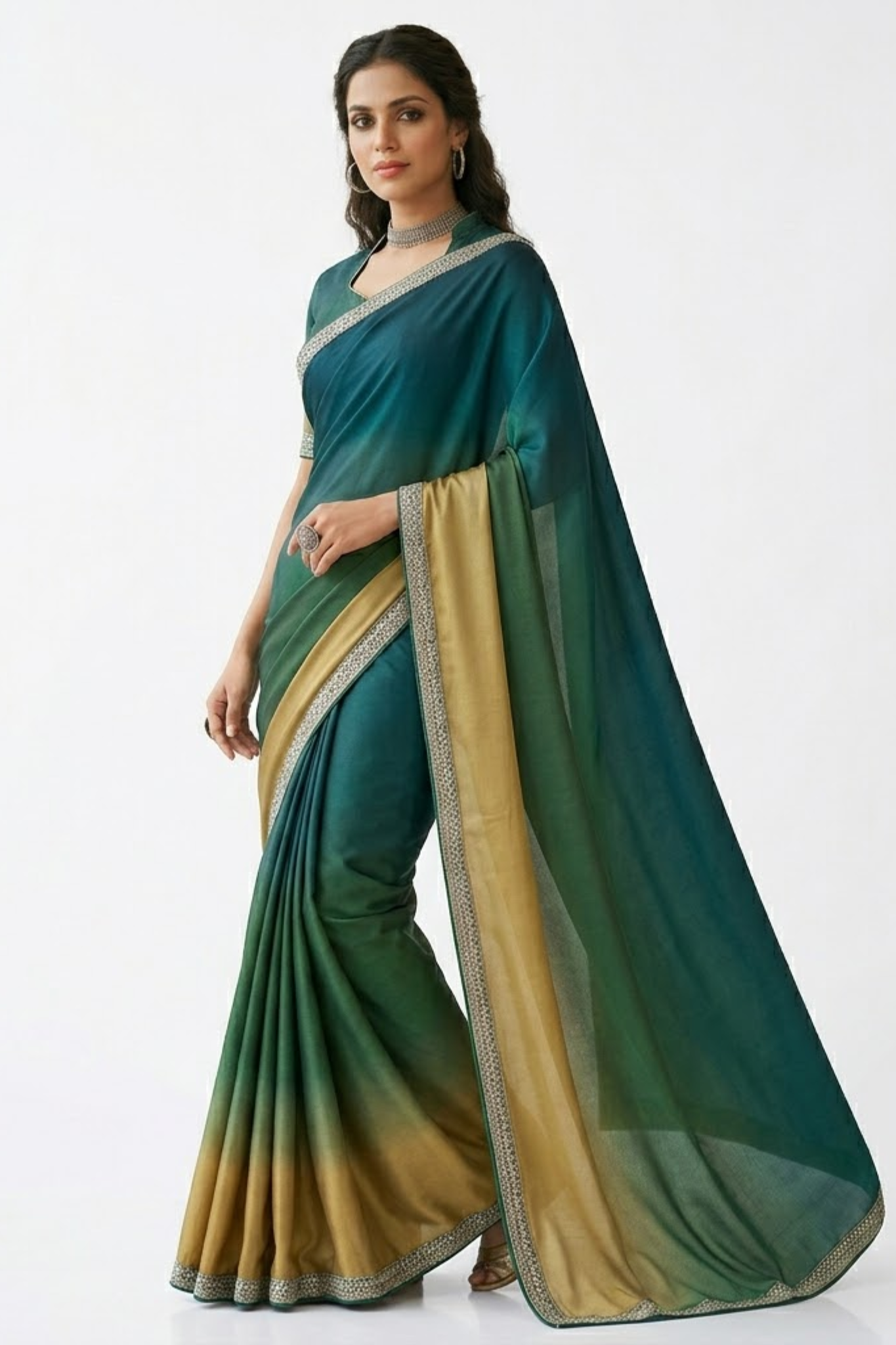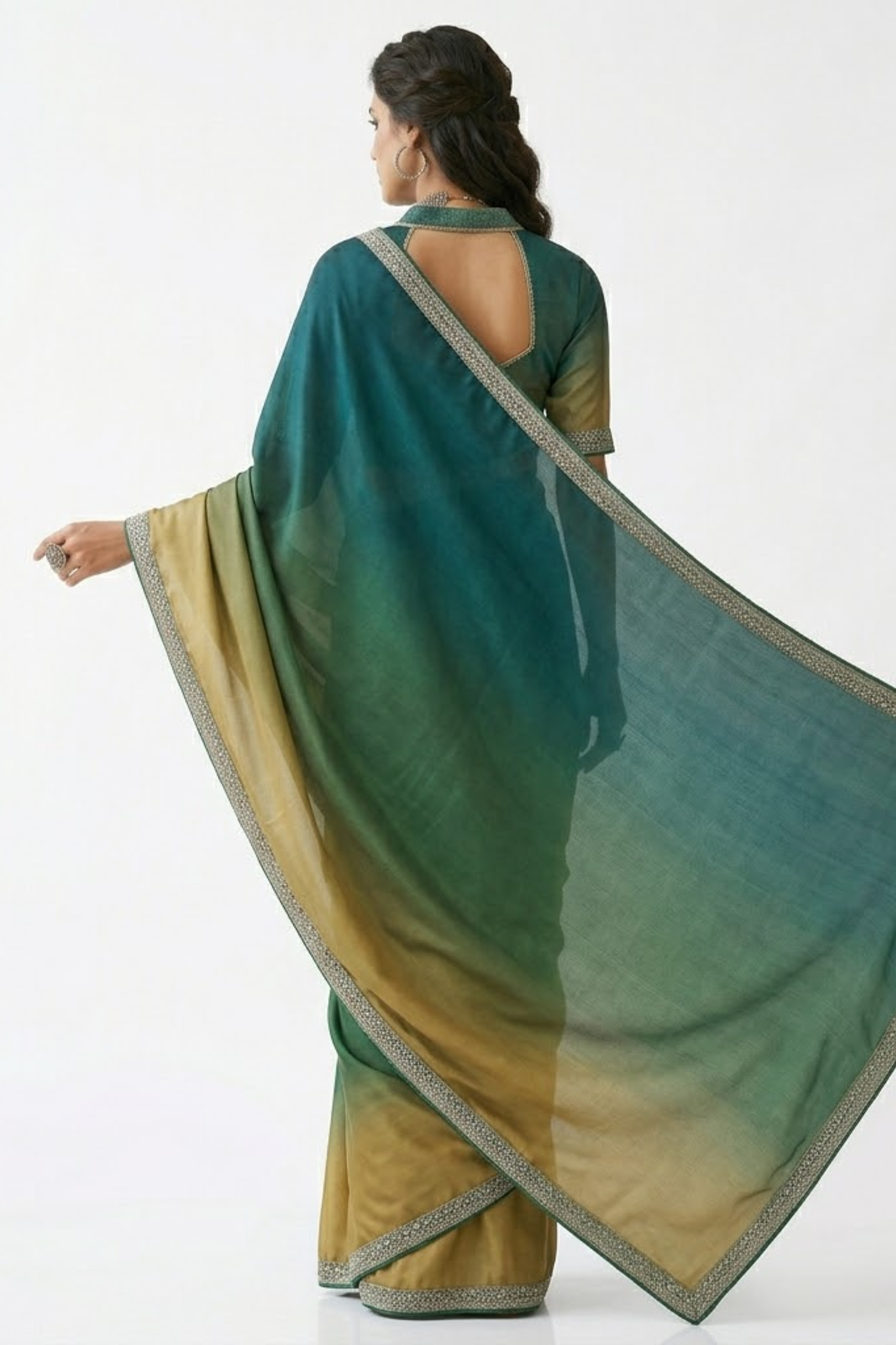Elegant Emerald Green & Gold Gradient Designer Saree