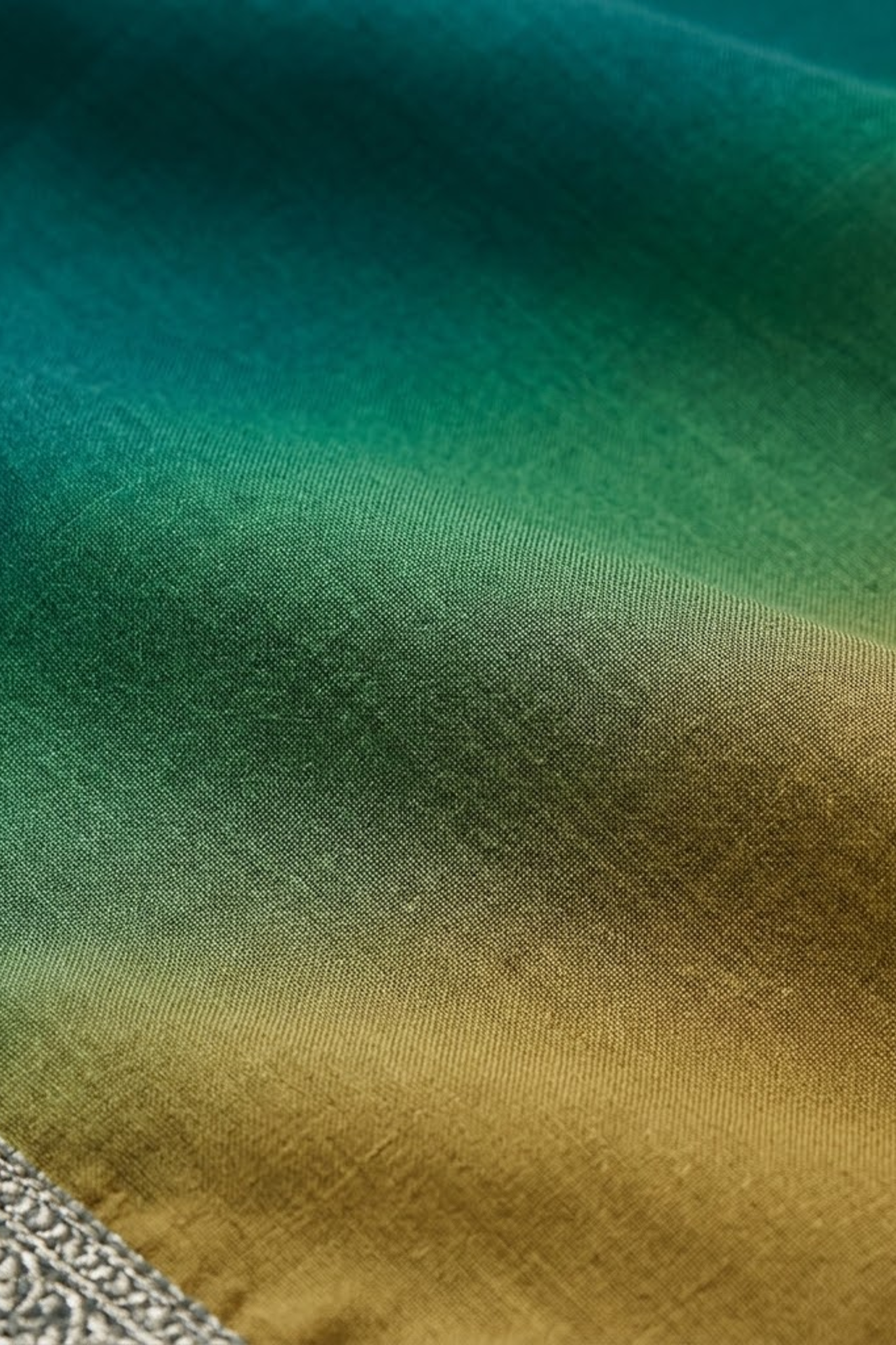 Elevate your ethnic wardrobe with this luxurious emerald green and gold gradient designer saree, crafted for modern elegance with a traditional touch. The smooth, flowing fabric enhances your silhouette while ensuring all-day comfort. The subtle gradient blending into rich gold tones creates a regal and eye-catching look, perfect for special occasions.